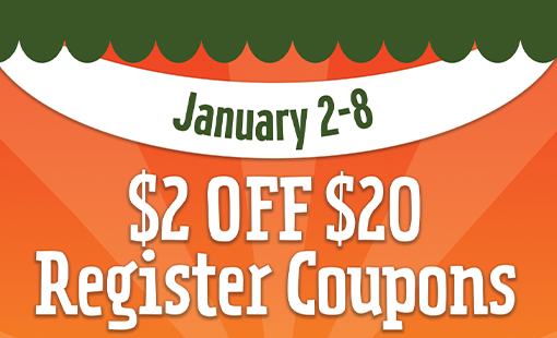 This week, spend $20+ and receive a $2 off coupon! Redeemable the day after your purchase and good until 1/15/26