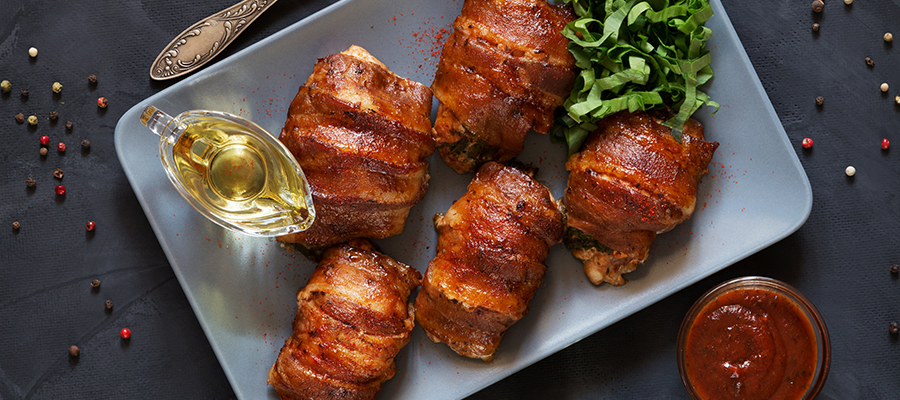 » Blog » Bacon Wrapped Apple BBQ Chicken